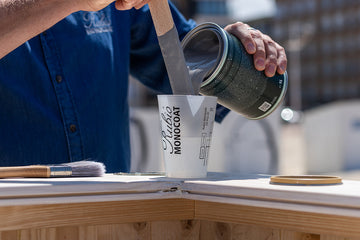 Ta bort gamla beläggningar vid behov, slipa eller rengör träet och skölj noggrant. Se till att ytan är helt ren och torr innan du applicerar någon finish.